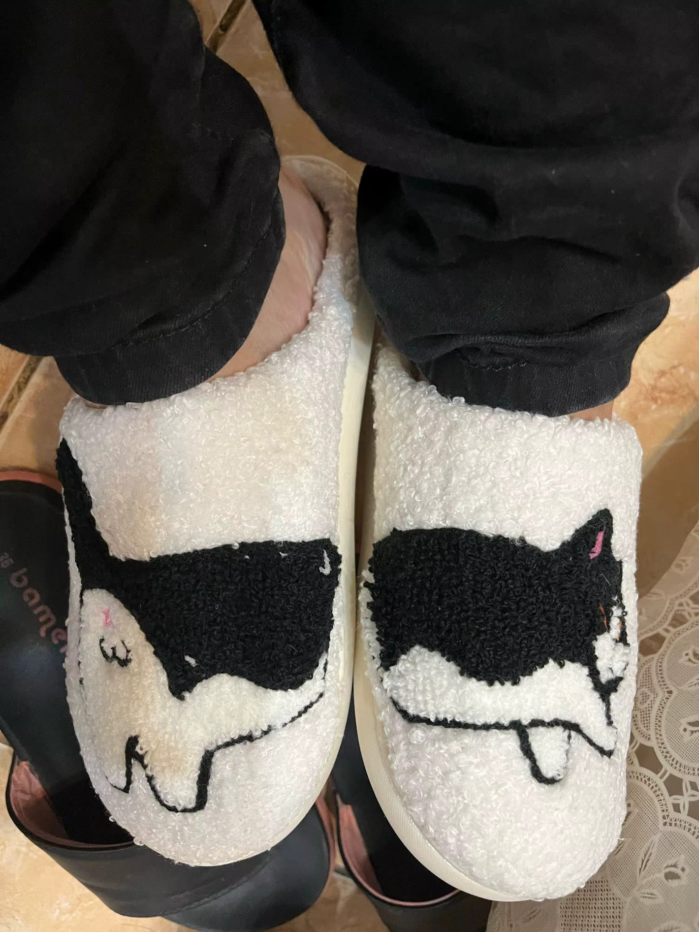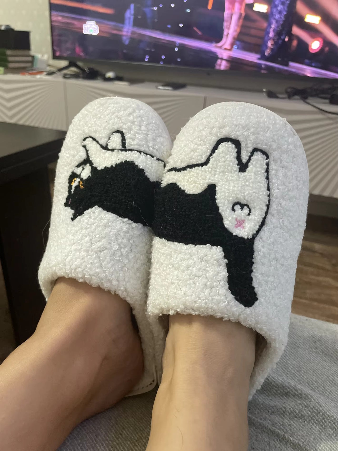 • These are SO comfortable! Perfect for around the house and the cat design is adorable. Love that every purchase helps save rescue cats. Best slippers I've ever owned!